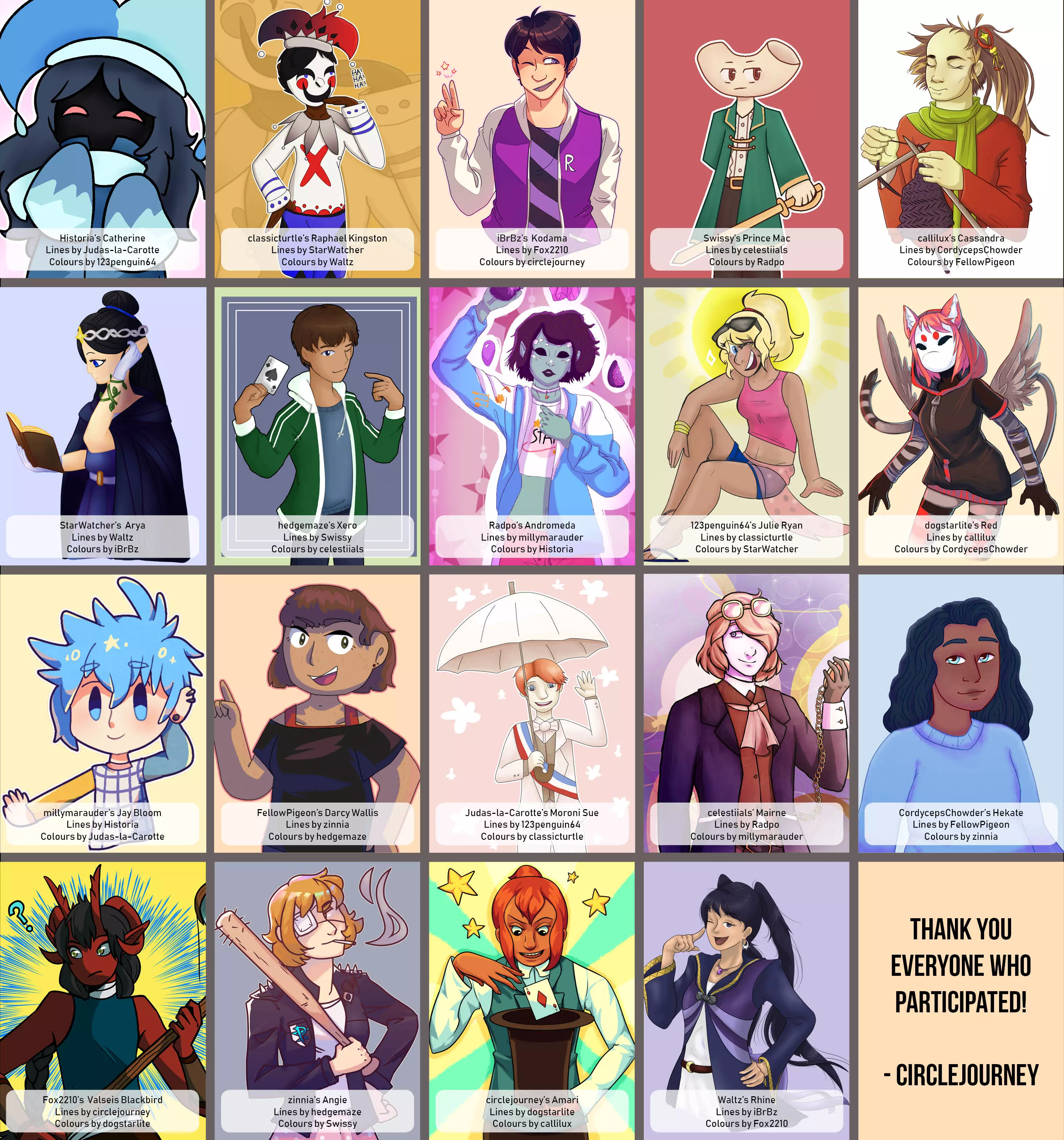 An art game where each person did lineart and then passed it to the next artist to colour.